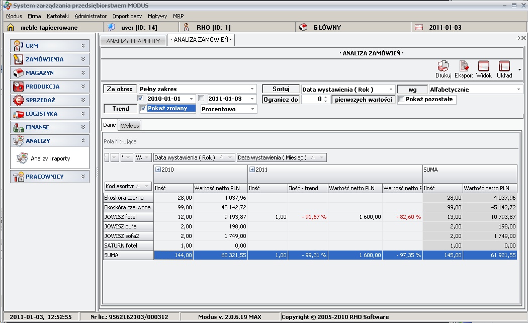 • Analiza zamówień - umożliwia pełną kontrolę ilość i wartość zamawianych produktów