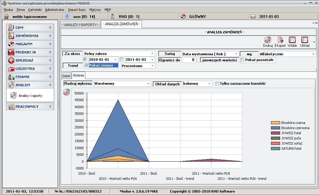 Program umożliwia pełną kontrolę ilość i wartość zamawianych produktów w dowolnym okresie za pomocą wielowymiarowych analiz.