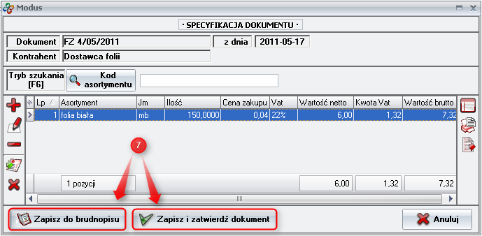 - Save and confirm a document - this option automatically confirms the document. There is no possibility of making changes in the FZ document.