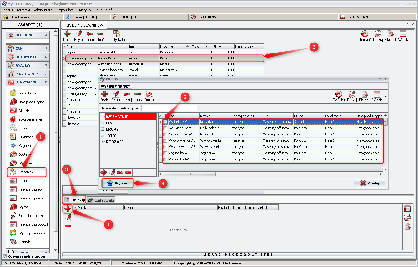 - Select the employee/employees that you want to assign to the selected object on the list that appears