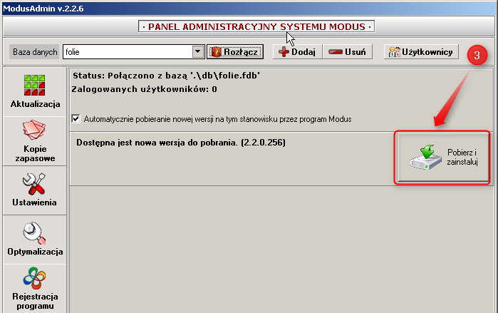 Po wylogowaniu wszystkich użytkowników można przystąpić do pobrania nowej wersji i jej instalacji.