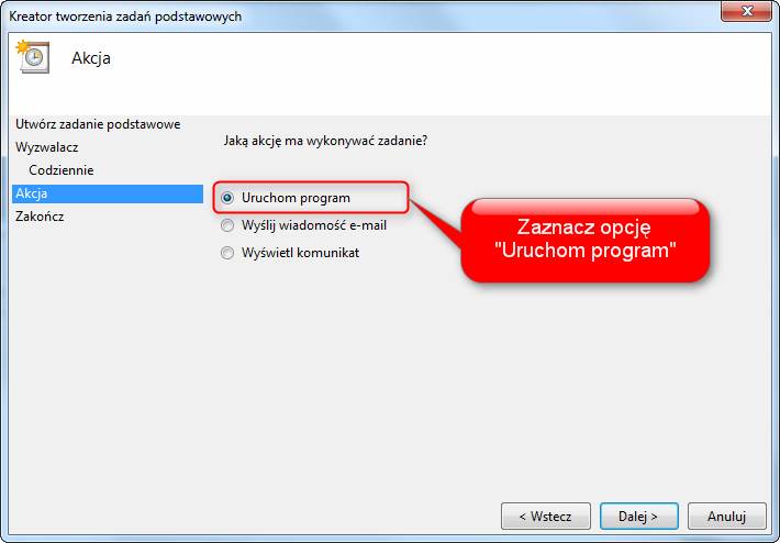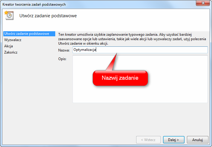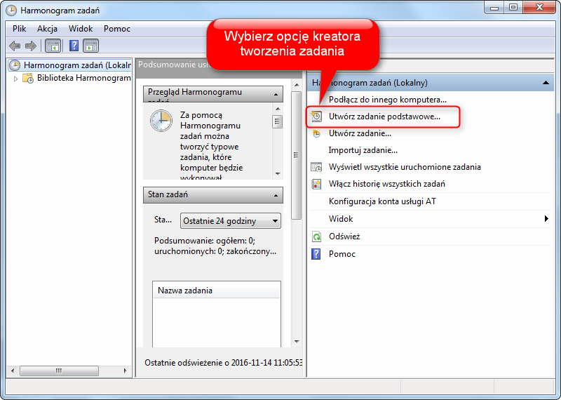 Aby utworzyć zadanie podstawowe przy użyciu interfejsu systemu Windows