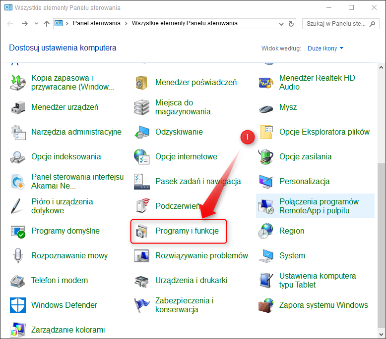- W Panelu sterowania wybrać Programy i funkcje (Ekran 1)