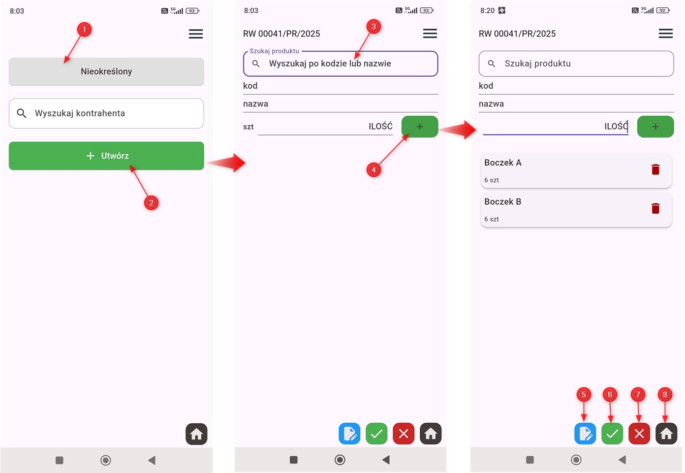 - dotknij odnaleziony produkt, system wskaże do którego zamówienia należy