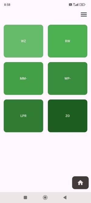 W centralnej części umieszczono nawigację w postaci kolorowych kafelków odpowiadających za funkcje: