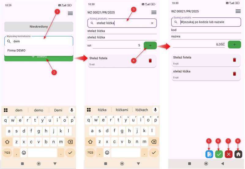 - Dotknij utworzony dokument WZ aby podglądnąć zawartość.