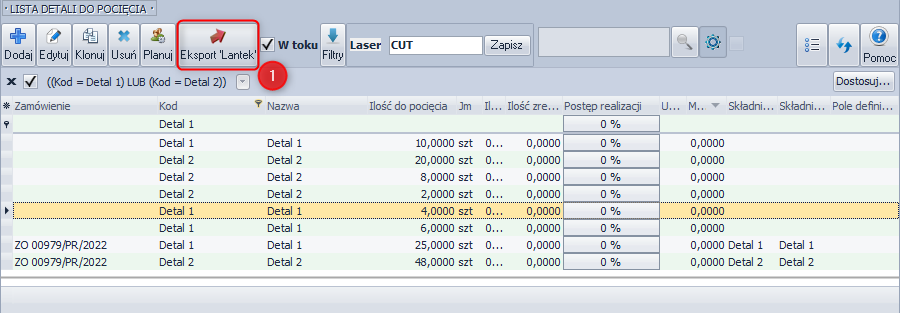 - Klikamy w przycisk „Export Lantek”,