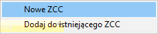 3. Wpisać wymagane dane dla nowego dokumentu ZCC,