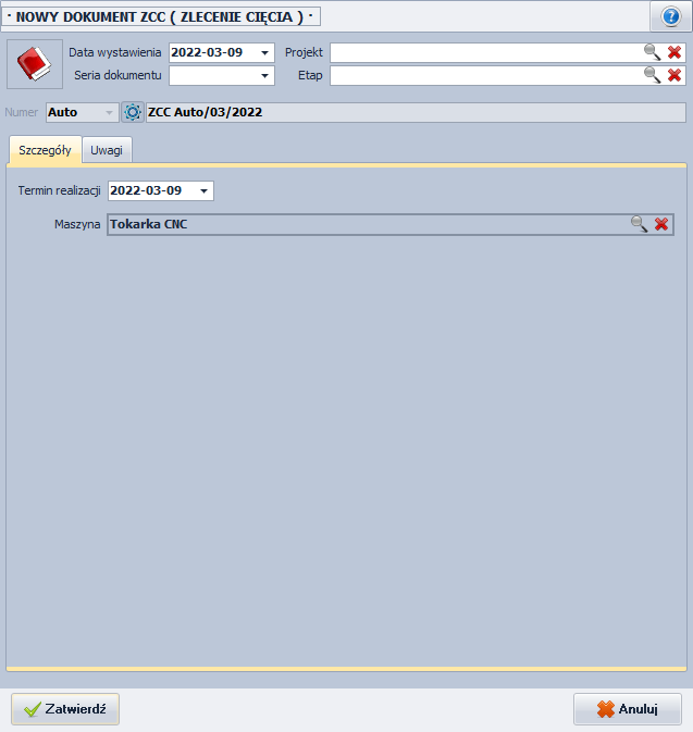 Aby zaplanować nowe zlecenie cięcia (ZCC). W tym celu należy: