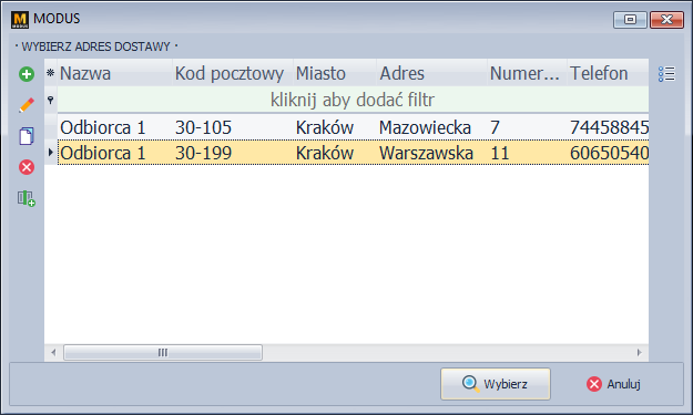 - Wybierz kontrahenta, do którego chcesz dodać adres.