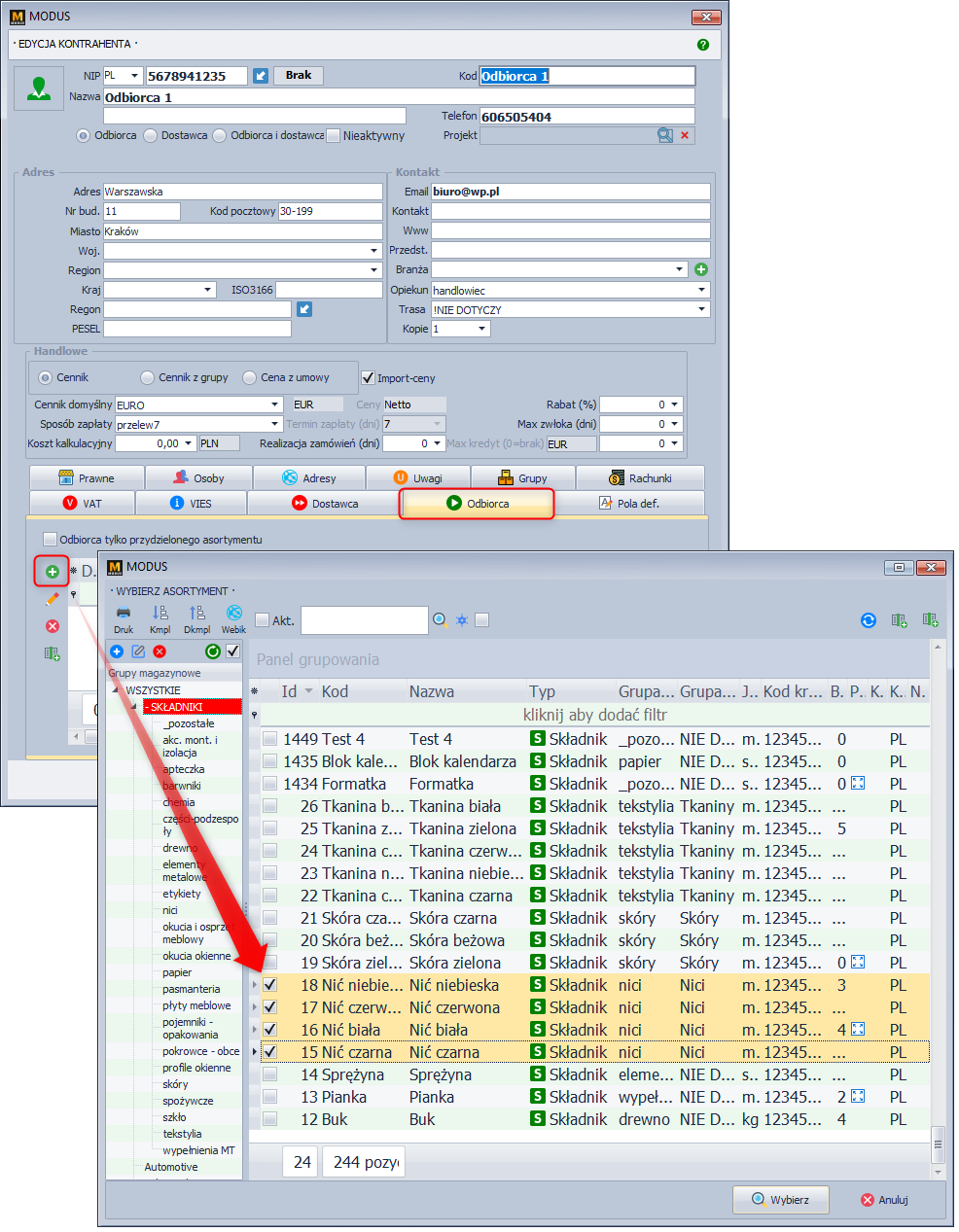 - Wybierz kontrahenta, który dostarcza dany asortyment.