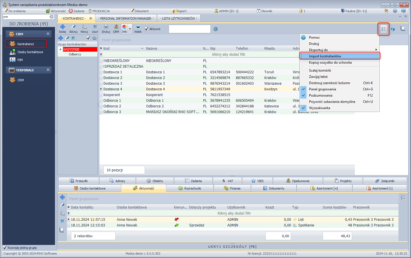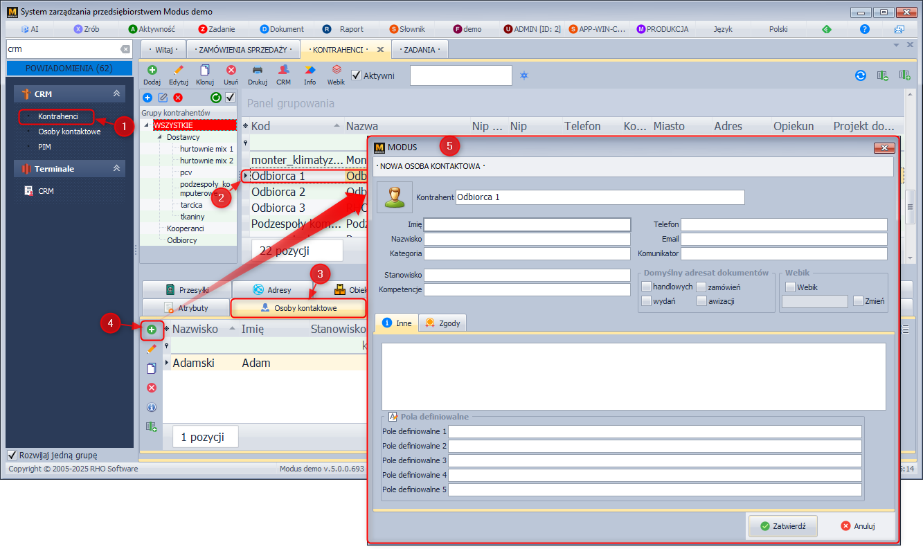 System umożliwia ewidencjonowanie informacji dotyczących osób kontaktowych poszczególnych Kontrahentów.