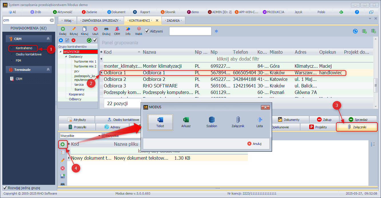 System umożliwia dodawanie załączników do kartotek kontrahentów np. umów w postaci plików w dowolnym formacie.