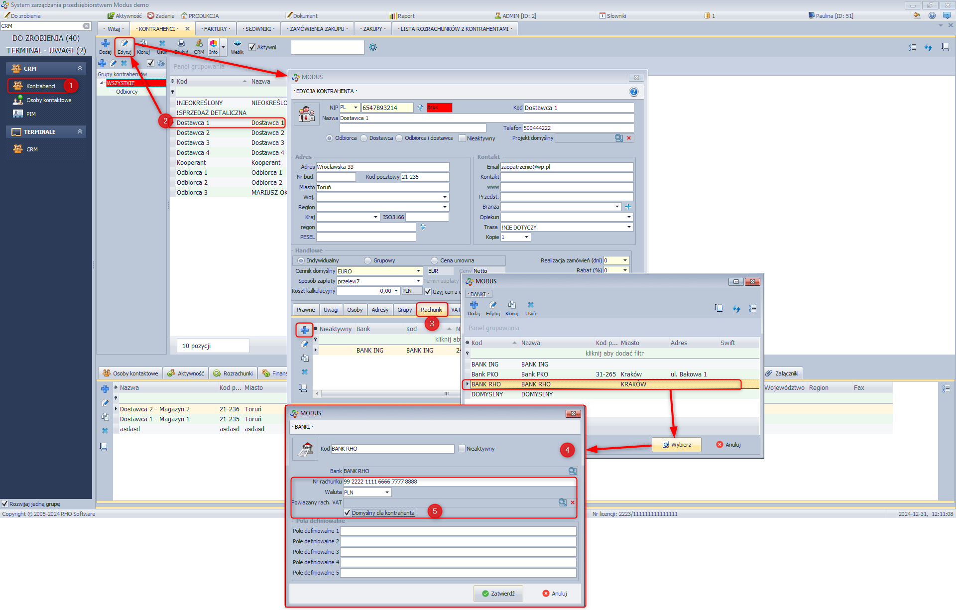 Aby przypisać rachunki bankowe do kontrahenta należy: