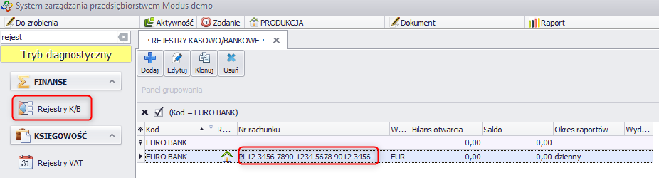 1. Zdefiniowanie numerów bankowych dla rejestru kasowo-bankowego