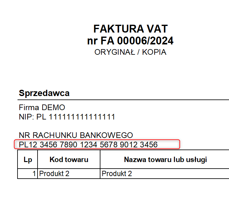 Numer rachunku bankowego powiązany ze sposobem zapłaty