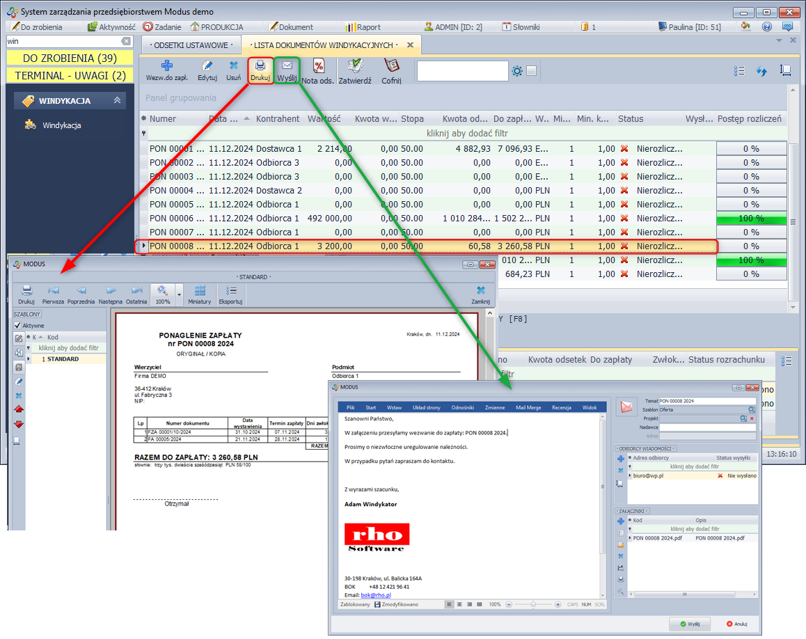 - W module WINDYKACJA wybrać Windykacja.