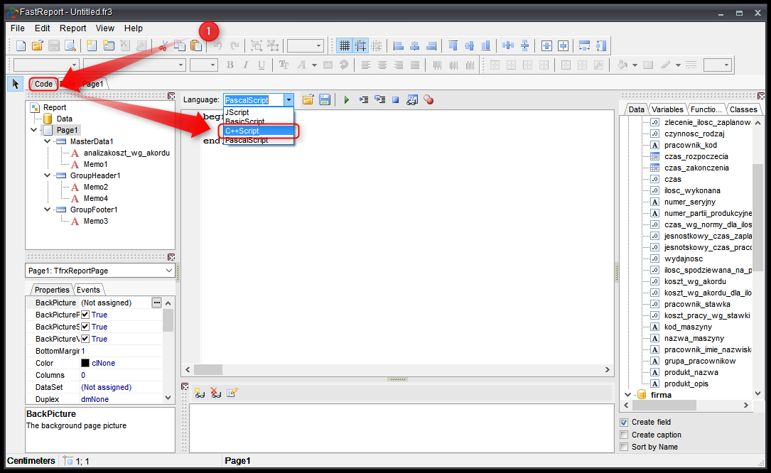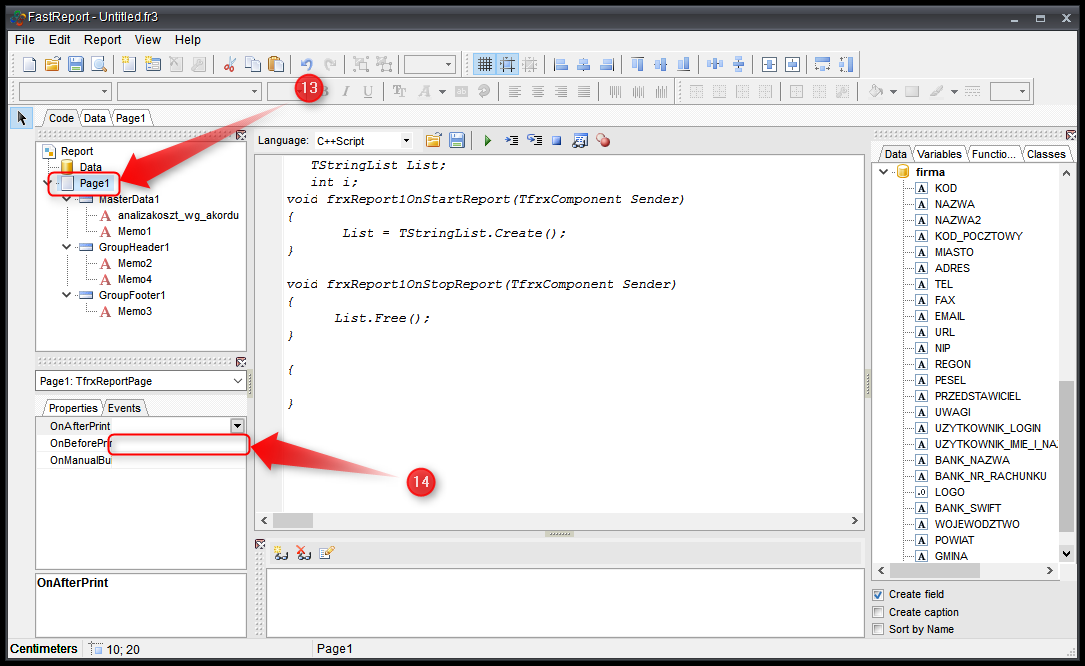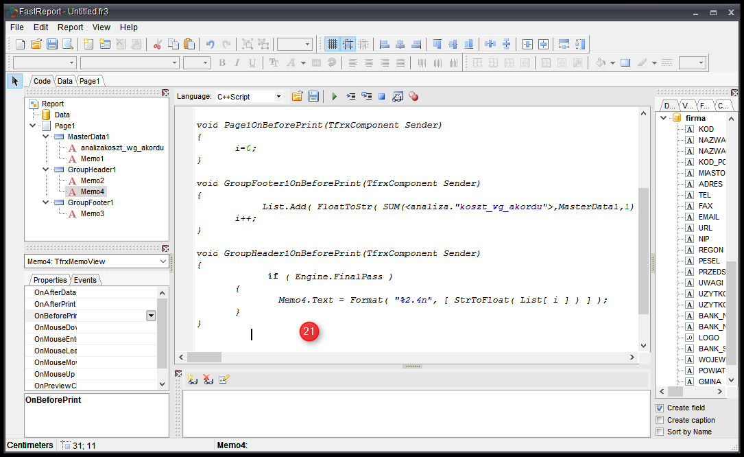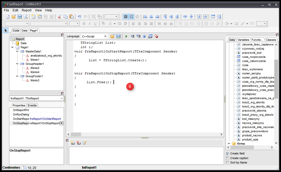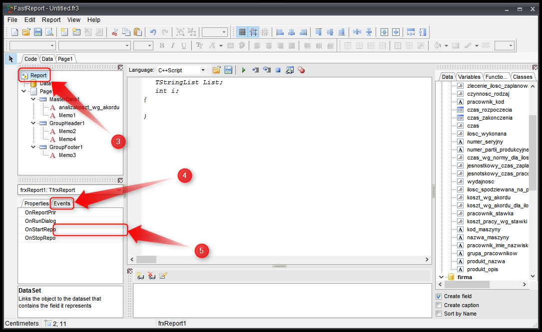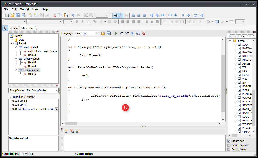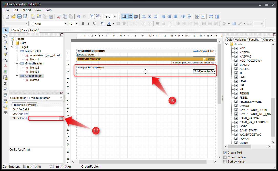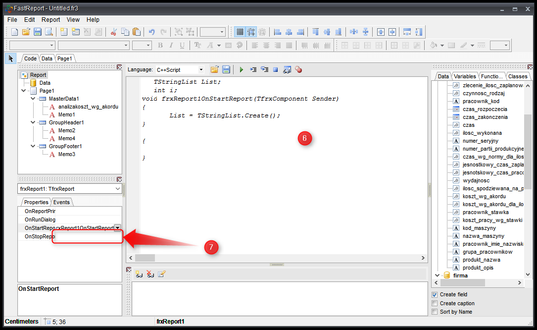 - Klikamy na GroupFooter1 → Events