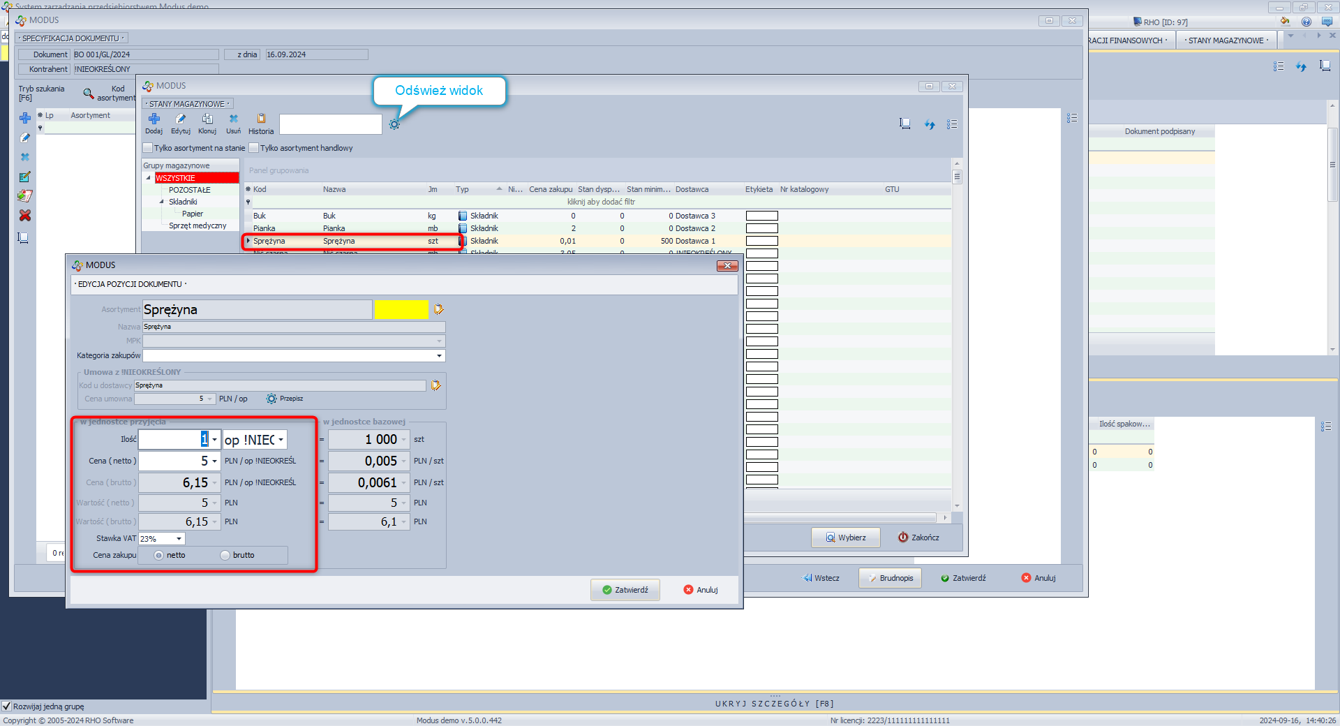 - Zmień cenę zakupu lub stawkę VAT.
