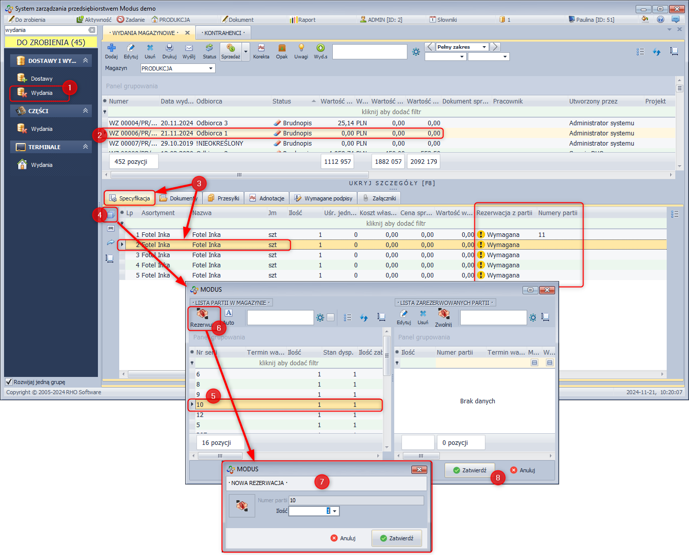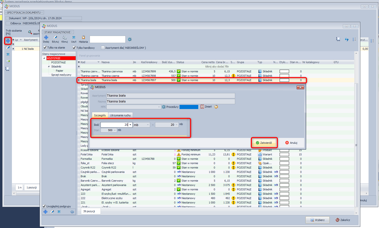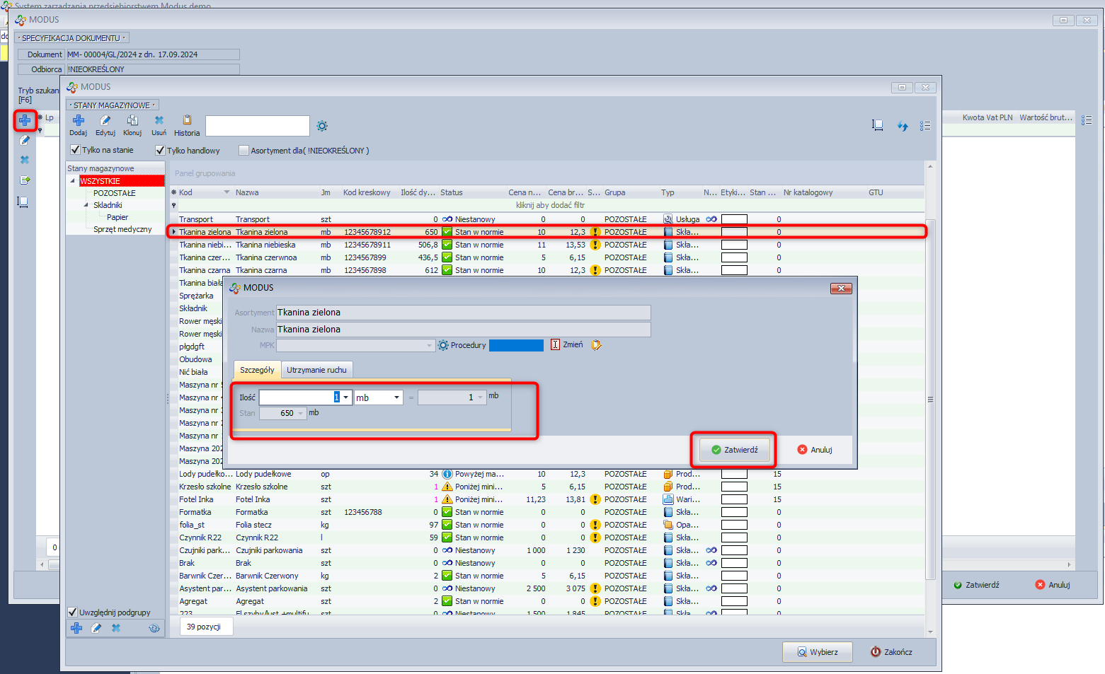 - Określ ilość do rezerwacji i kliknij Zatwierdź