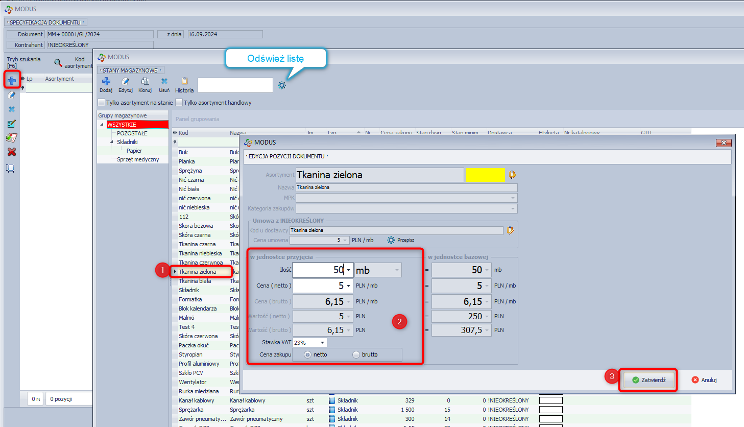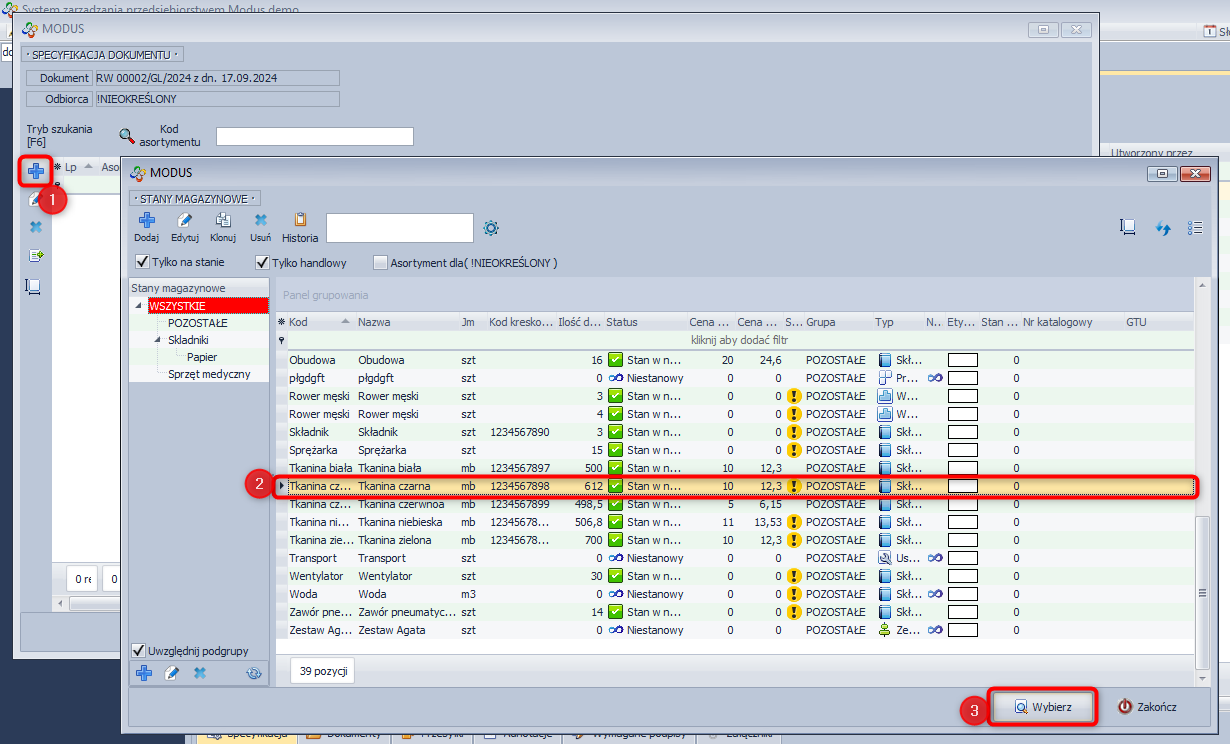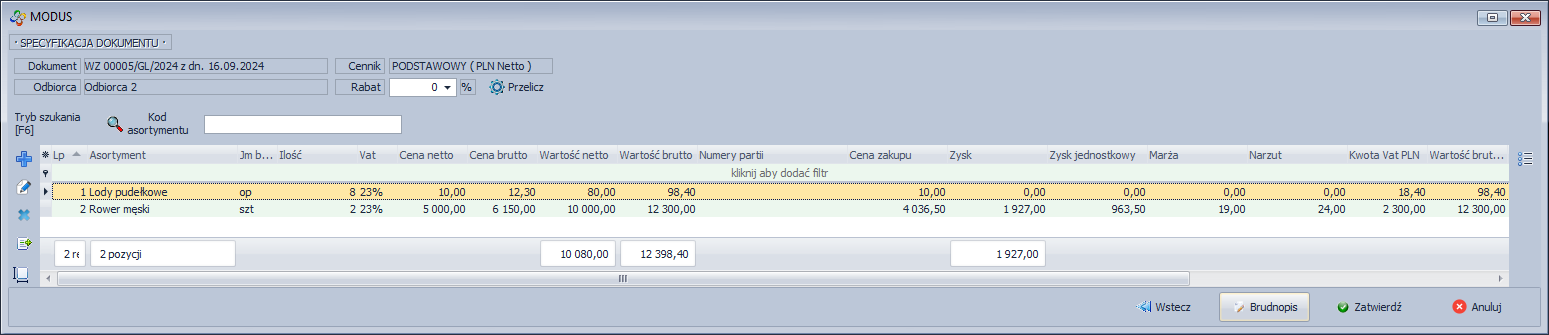 Dodawanie pozycji do dokumentu
