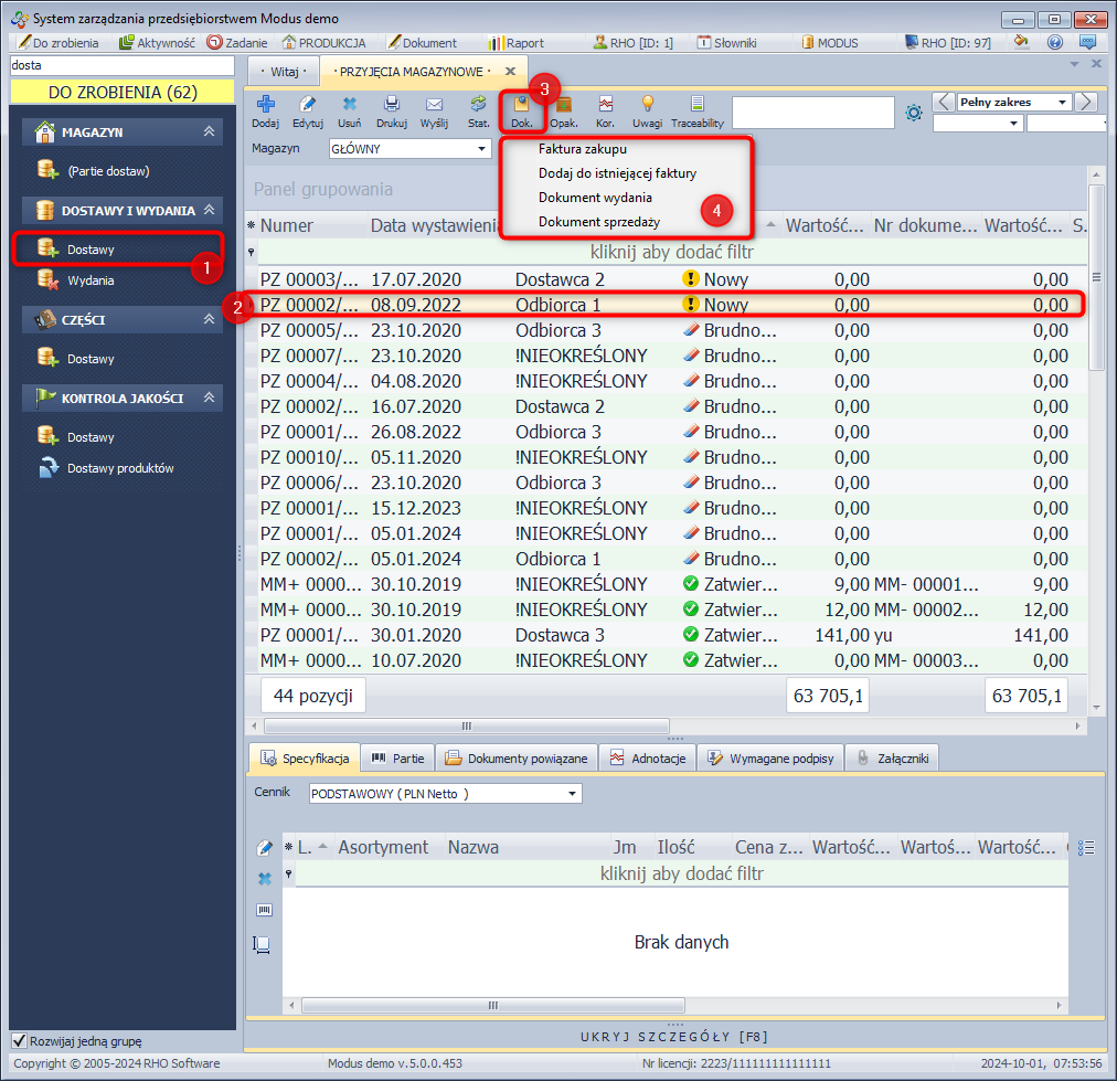 - Z bocznego menu wybierz moduł DOSTAWY I WYDANIA, a następnie Dostawy.