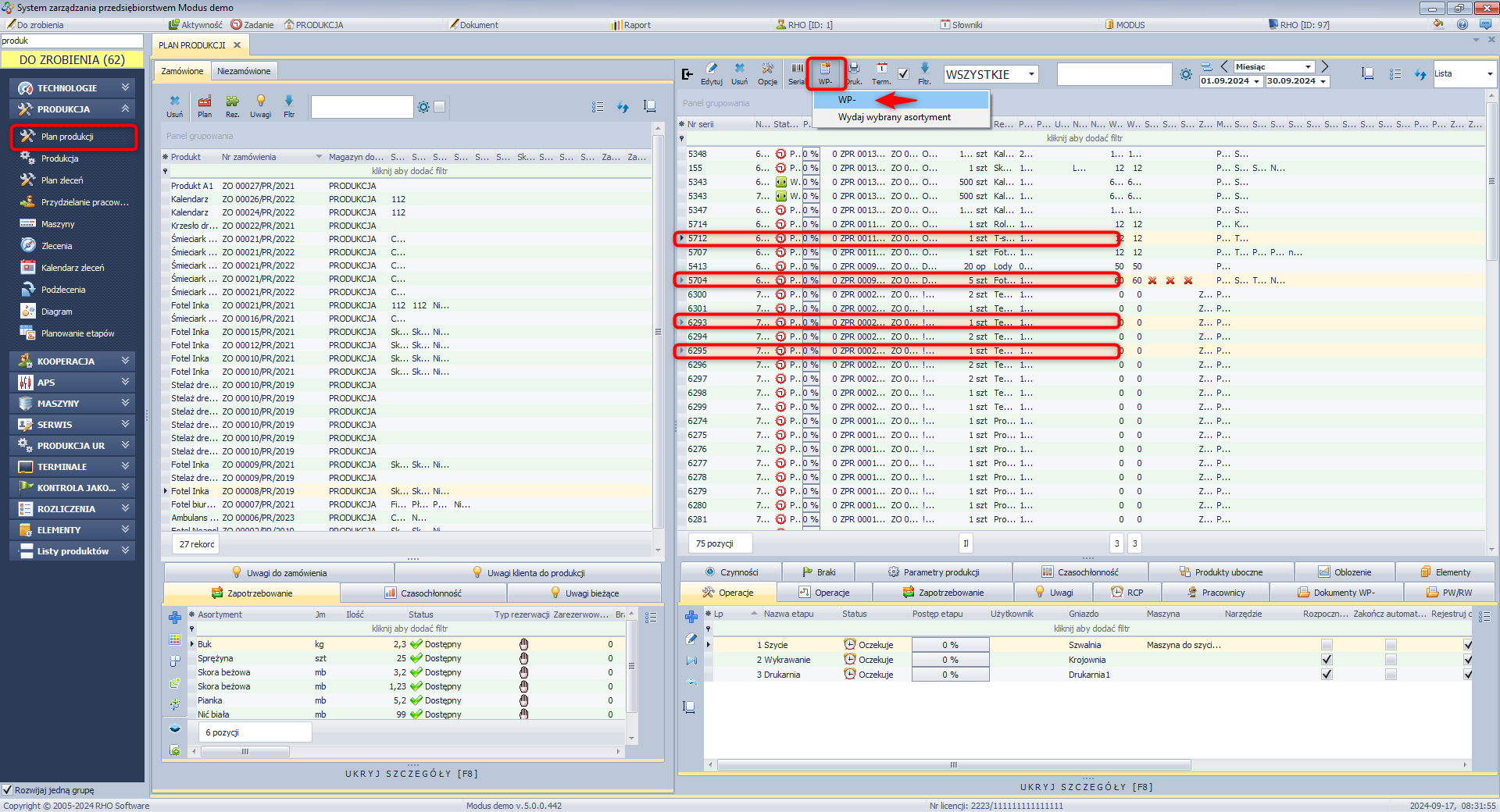 Automatyczna seria dla dokumentów WP- z poziomu planowania produkcji: