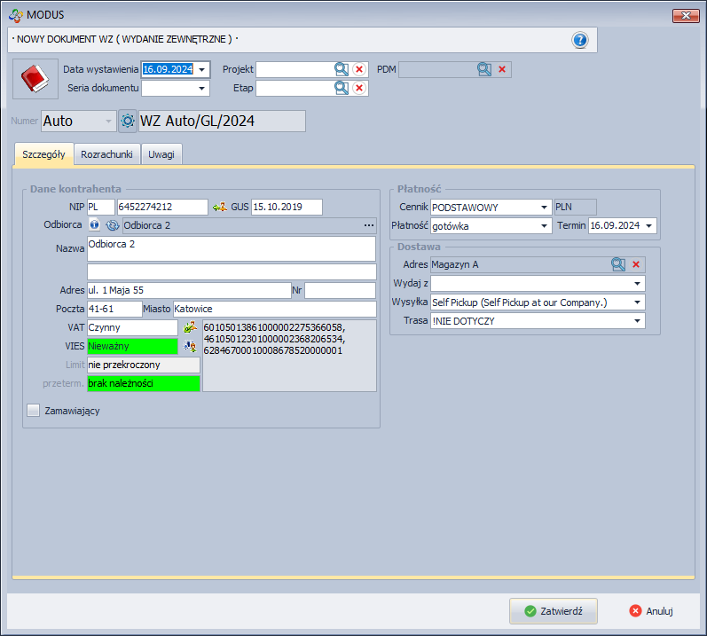 - Uzupełnij dane dotyczące wystawianego dokumentu.