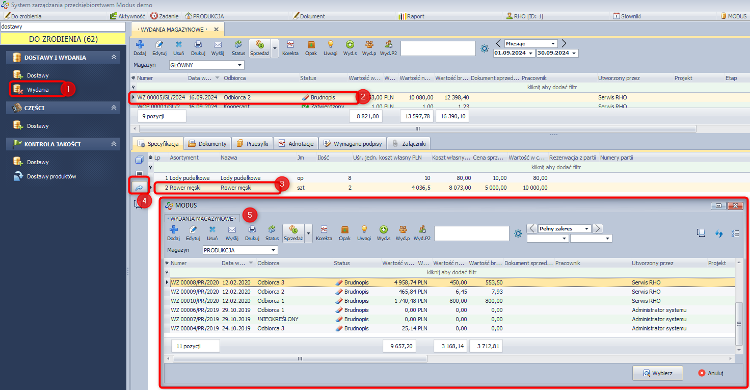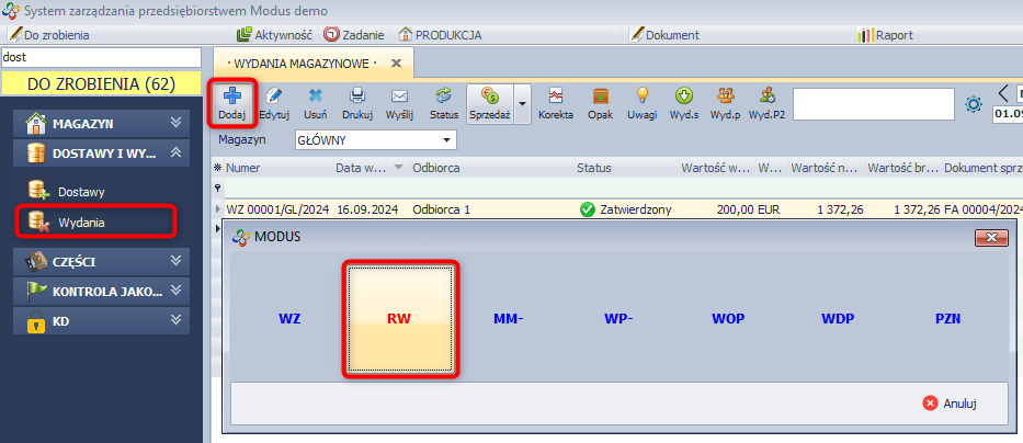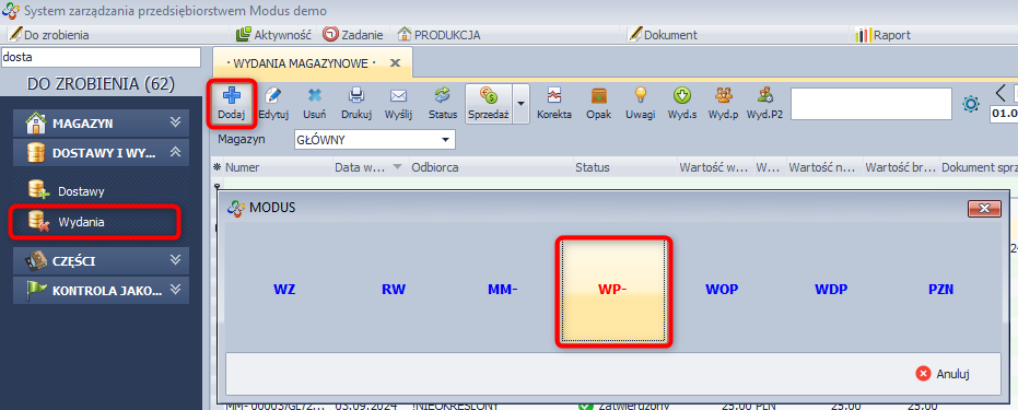 - W module Magazyn wybierz Wydania