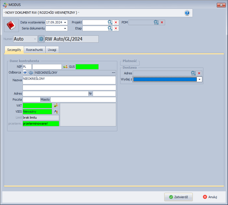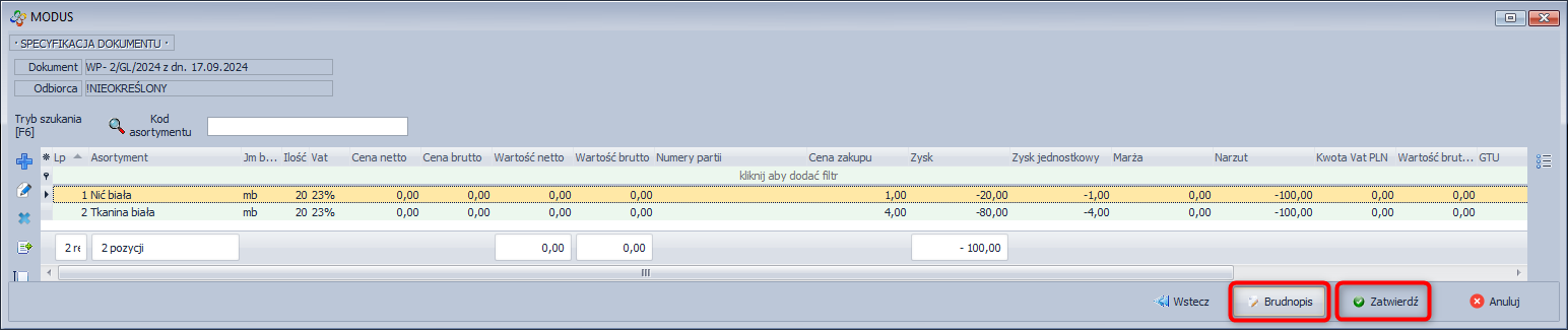 - Dokument zostanie wystawiony w brudnopisie.