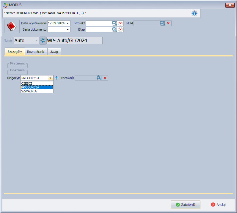 - Wybierz pracownika który zostanie przypisany do dokumentu wydania.