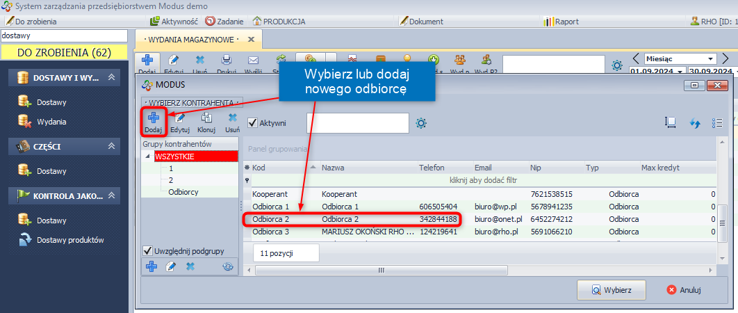 - Wybierz kontrahenta.