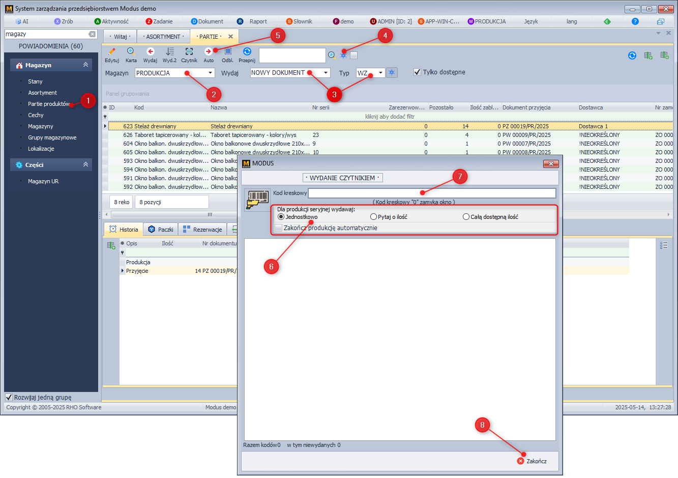 System Modus umożliwia wydawanie produktów za pomocą czytnika kodów kreskowych. Od wersji 4.0.0.320 wydawać możemy również produkty które są produkowane seryjnie.