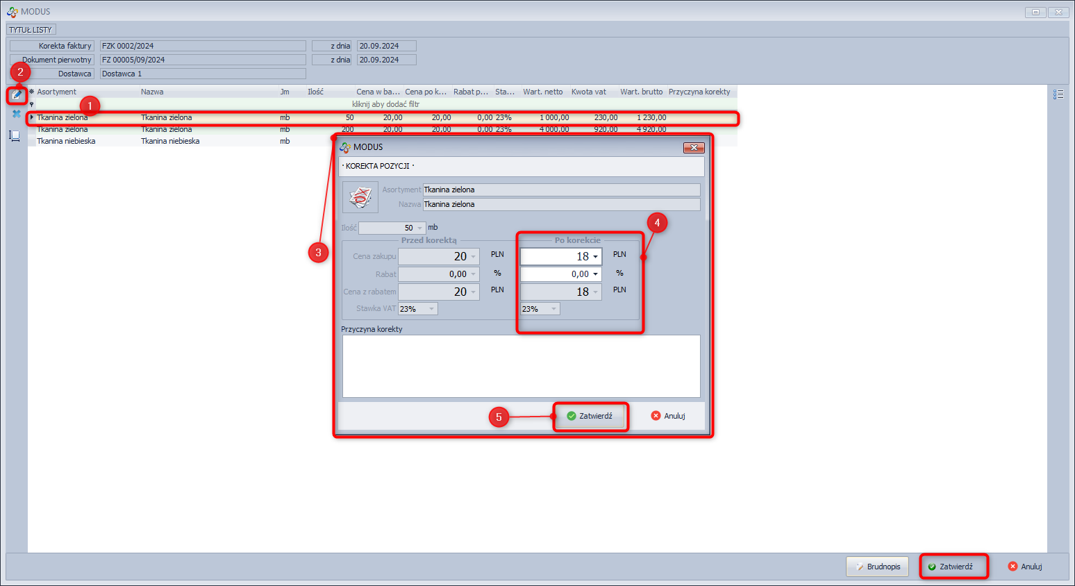 - Kliknij Korekta, Korekta ceny/rabatu