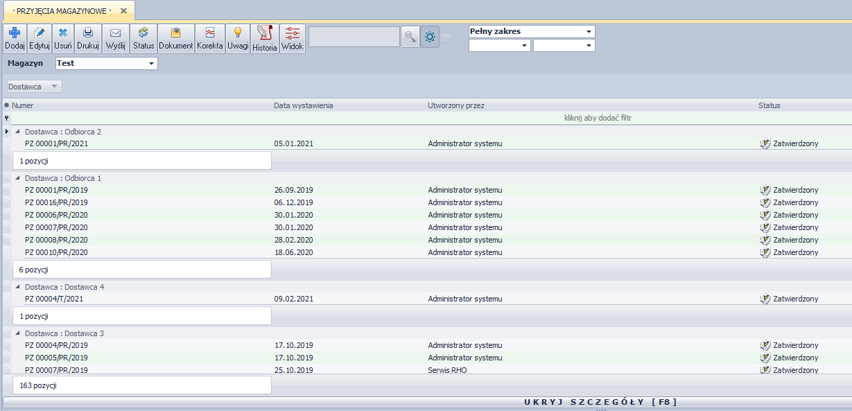 - Zapisz i zatwierdź - zmiana statusu na Zatwierdzony