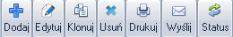 Można w nim wyróżnić kilka grup przycisków. Zazwyczaj są to trzy grupy. Pierwsza grupa, znajdująca się z lewej strony obejmuje narzędzia konieczne do pracy z modułem takie jak: dodaj, edytuj, klonuj, czy usuń wpis. Druga grupa zawiera zestaw operacji dodatkowych takich jak: drukuj, zatwierdź, wartość, inwentaryzacja, itd. Natomiast trzecia grupa, znajdująca się w prawej części paska narzędzi w każdym module zawiera dwa narzędzia: lista oraz widok. Jak już napisano, każda ikona oznacza odrębną operację. W celu jej wykonania należy ją wcisnąć przy pomocy myszy. Taka akcja wywoła okno, które pozwoli wprowadzić dane. Żeby dokonać operacji np: dodaj, konieczne jest użycie przycisku „Zatwierdź”. Pozwoli to na zachowanie wprowadzonych danych w bazie. Jeśli użyjemy przycisku Anuluj, dane nie zostaną zapisane.