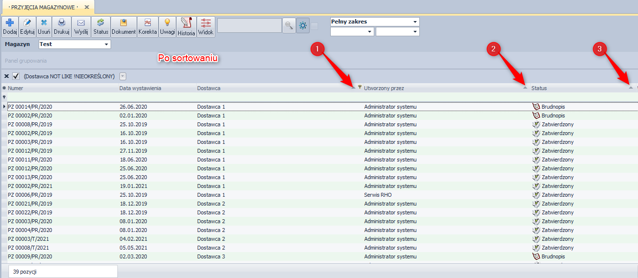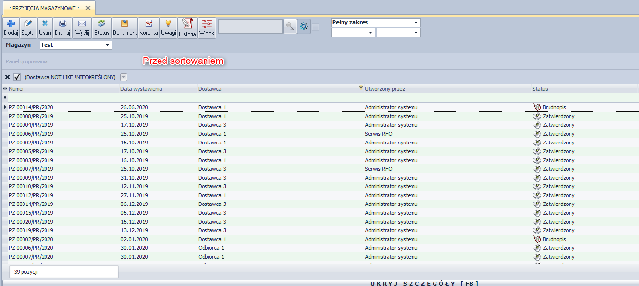 W systemie niezależnie do modułu występuje kilka statusów dokumentów: