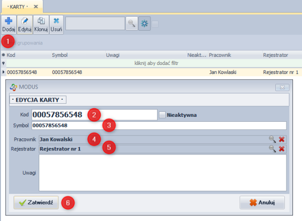 Przypisanie karty do pracownika: