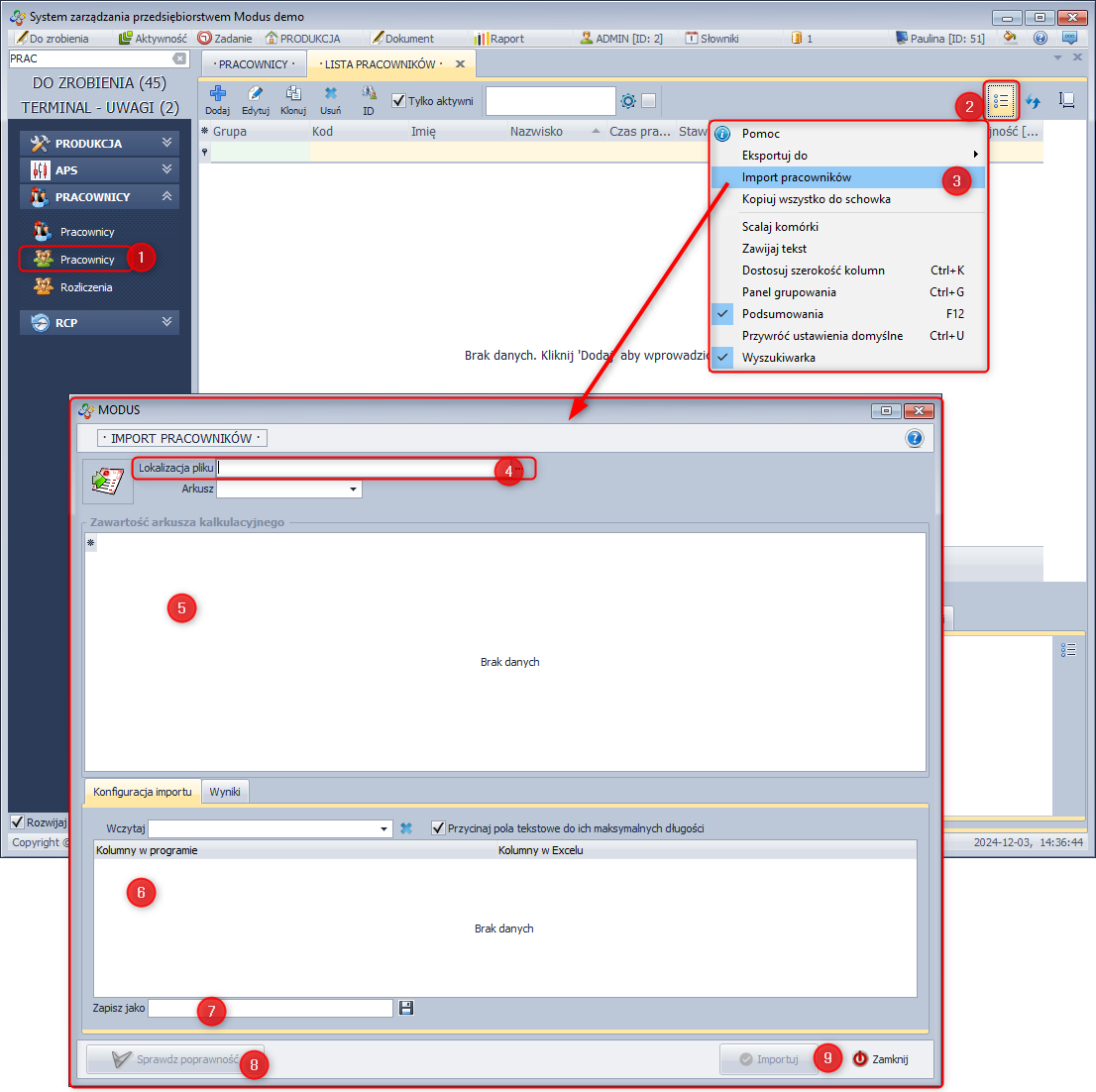 W celu zaimportowania pracowników: