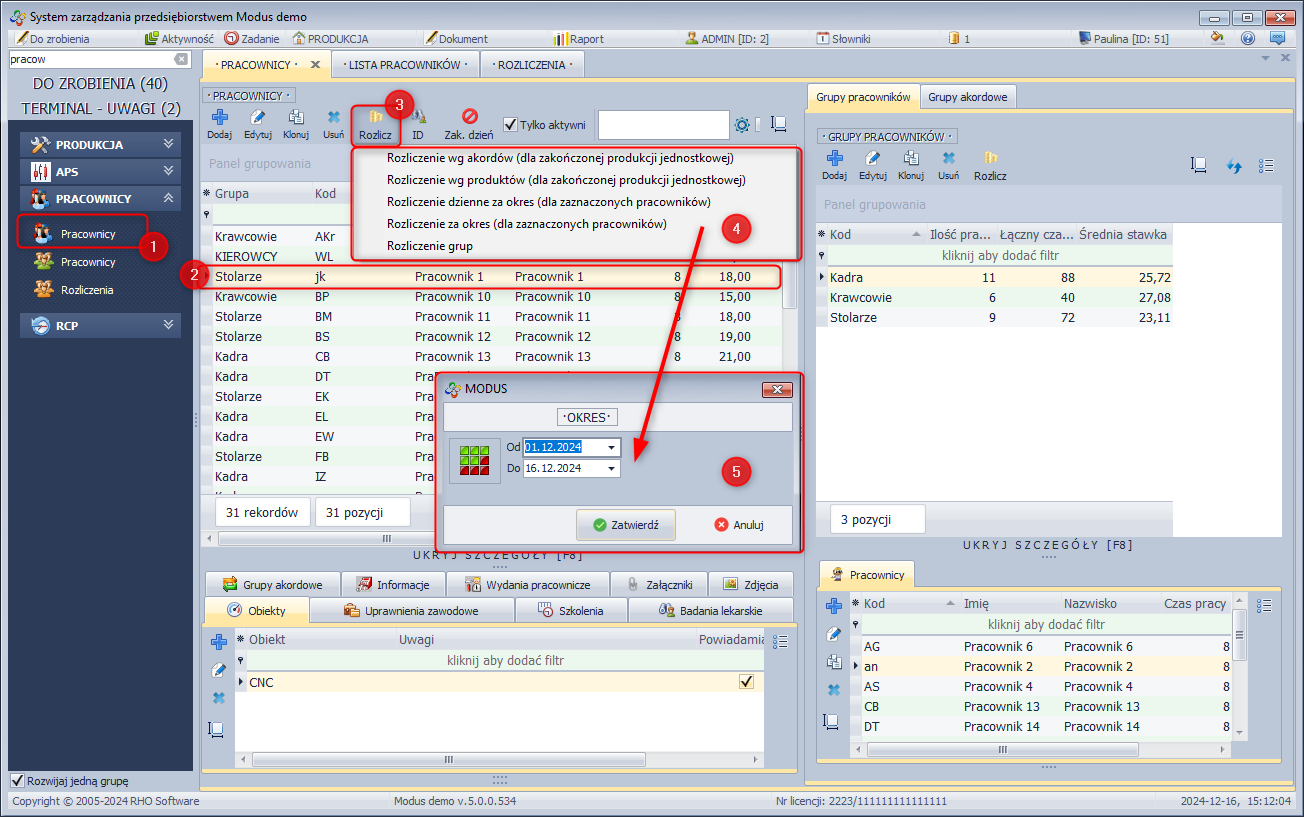 System/Konfiguracja/Ustawienia globalne/Produkcja/Pracownicy/Rozliczenie pracownika: