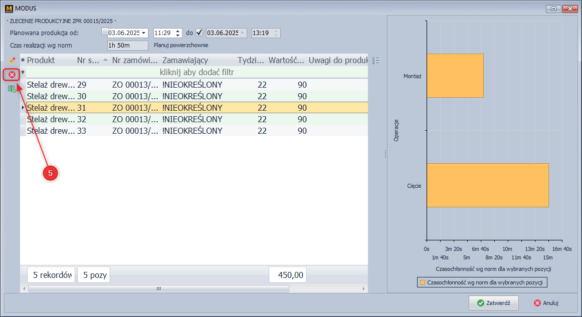 - W lewym oknie na liście zamówień wybieramy to, które chcemy zaplanować.