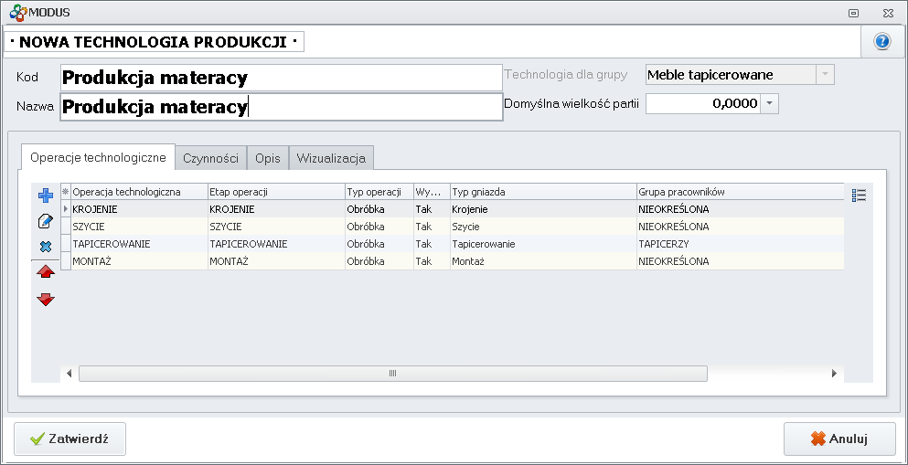 - Dodaj kolejną operację technologiczną.