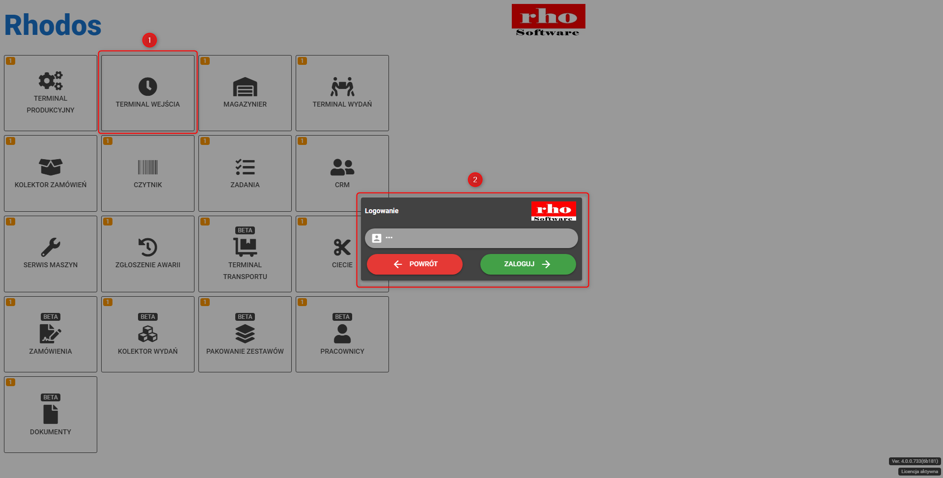 - Aplikacja Terminal wejścia