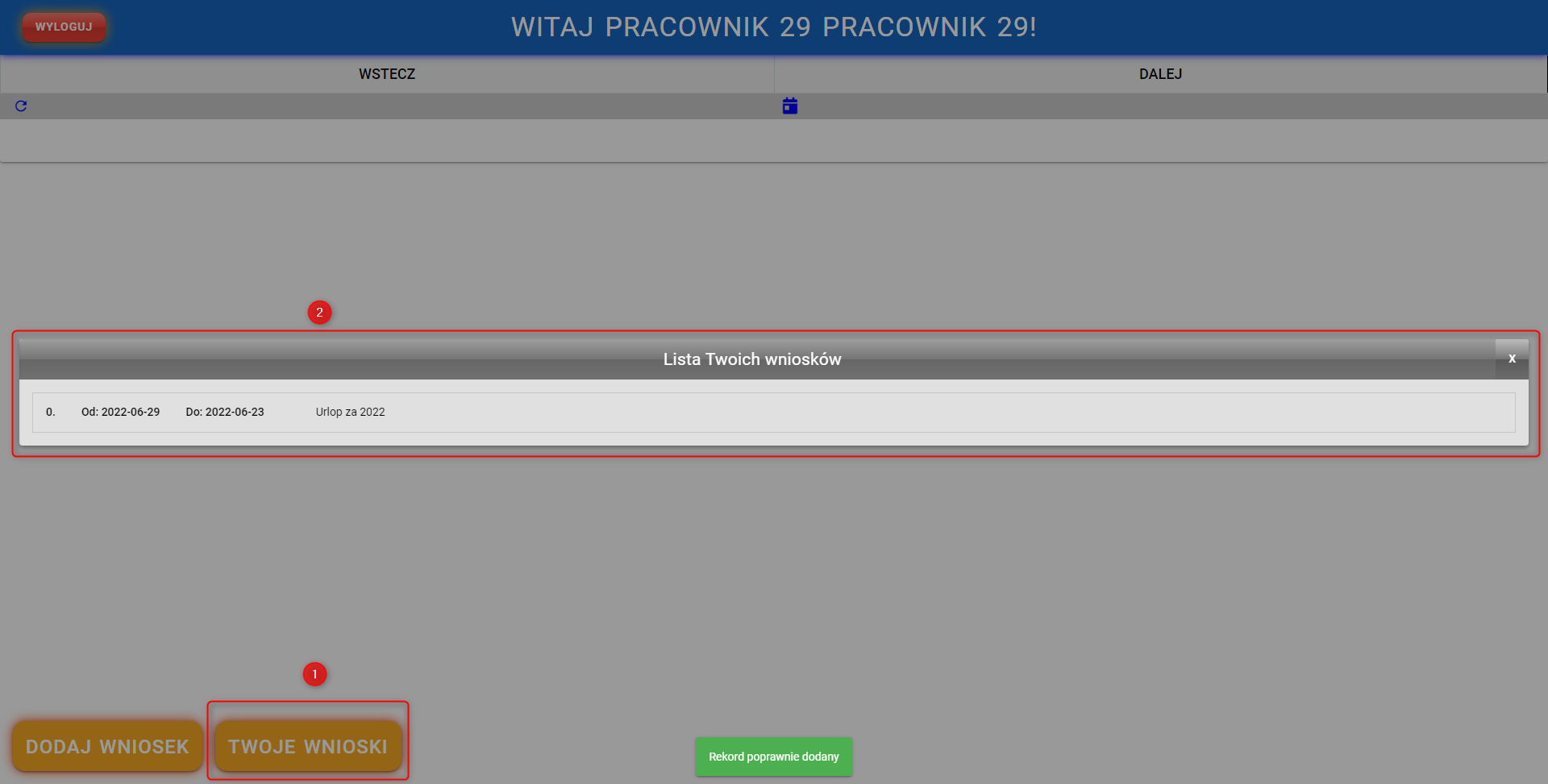 - Dodanie wniosku