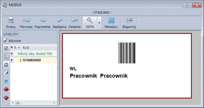 Drukowanie identyfikatora pracownika