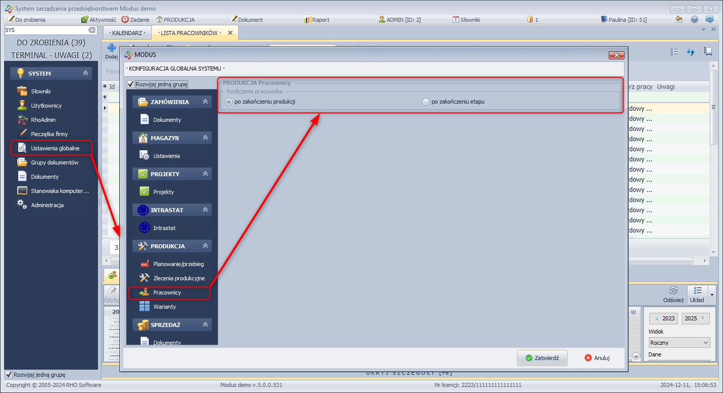 SYSTEM/Ustawienia globalne/Produkcja/Pracownicy/Rozliczenie pracownika: