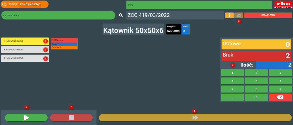 Po zalogowaniu się pracownika do terminala należy wczytać zlecenie cięcia (ZCC) lub wybrać je z listy.