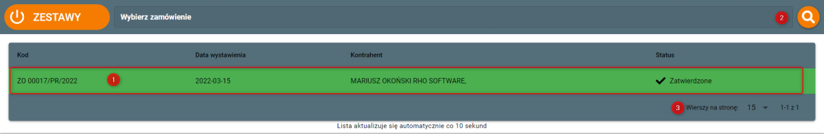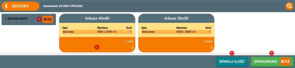- Wybieramy zamówienie dla którego rozpoczniemy pakowanie,