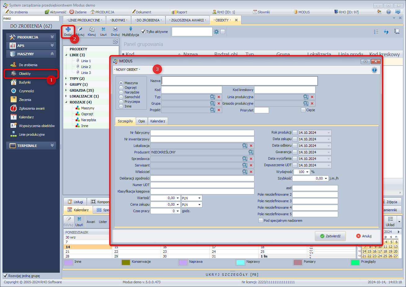 W systemie Modus ERP obiekty możemy podzielić na następujące rodzaje: