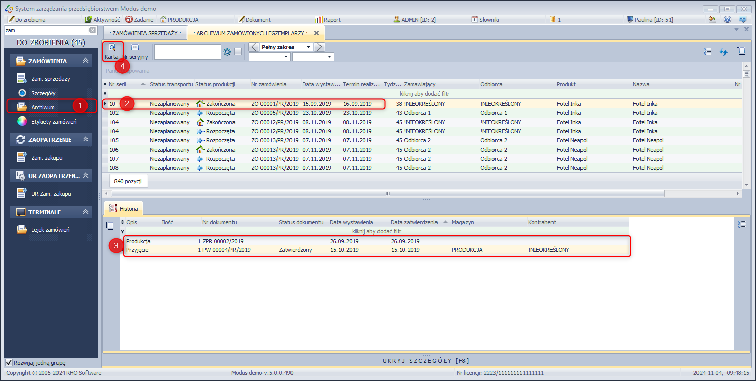 - W module ZAMÓWIENIA wybierz Archiwum